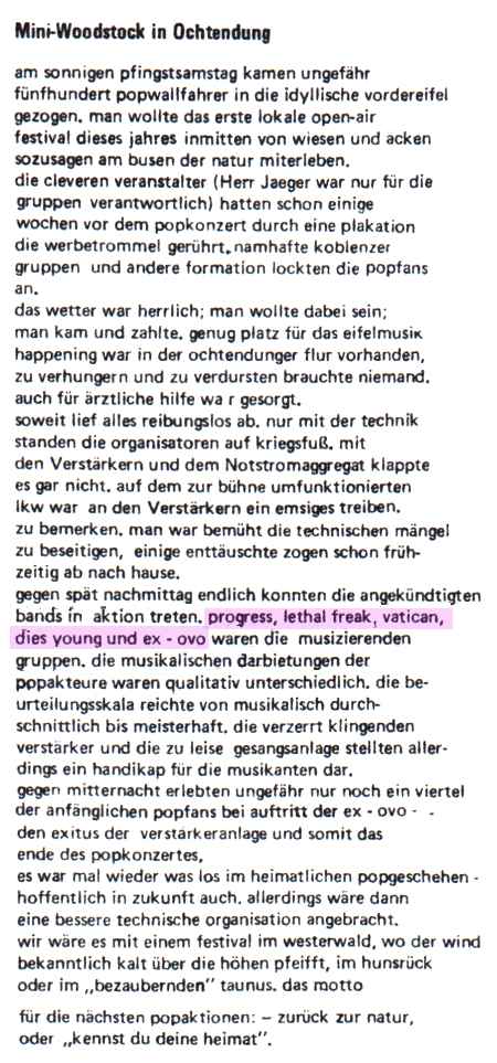 | Koblenzer Rockgruppen | Ex Ovo | Blackbyrds | Vatican | ||